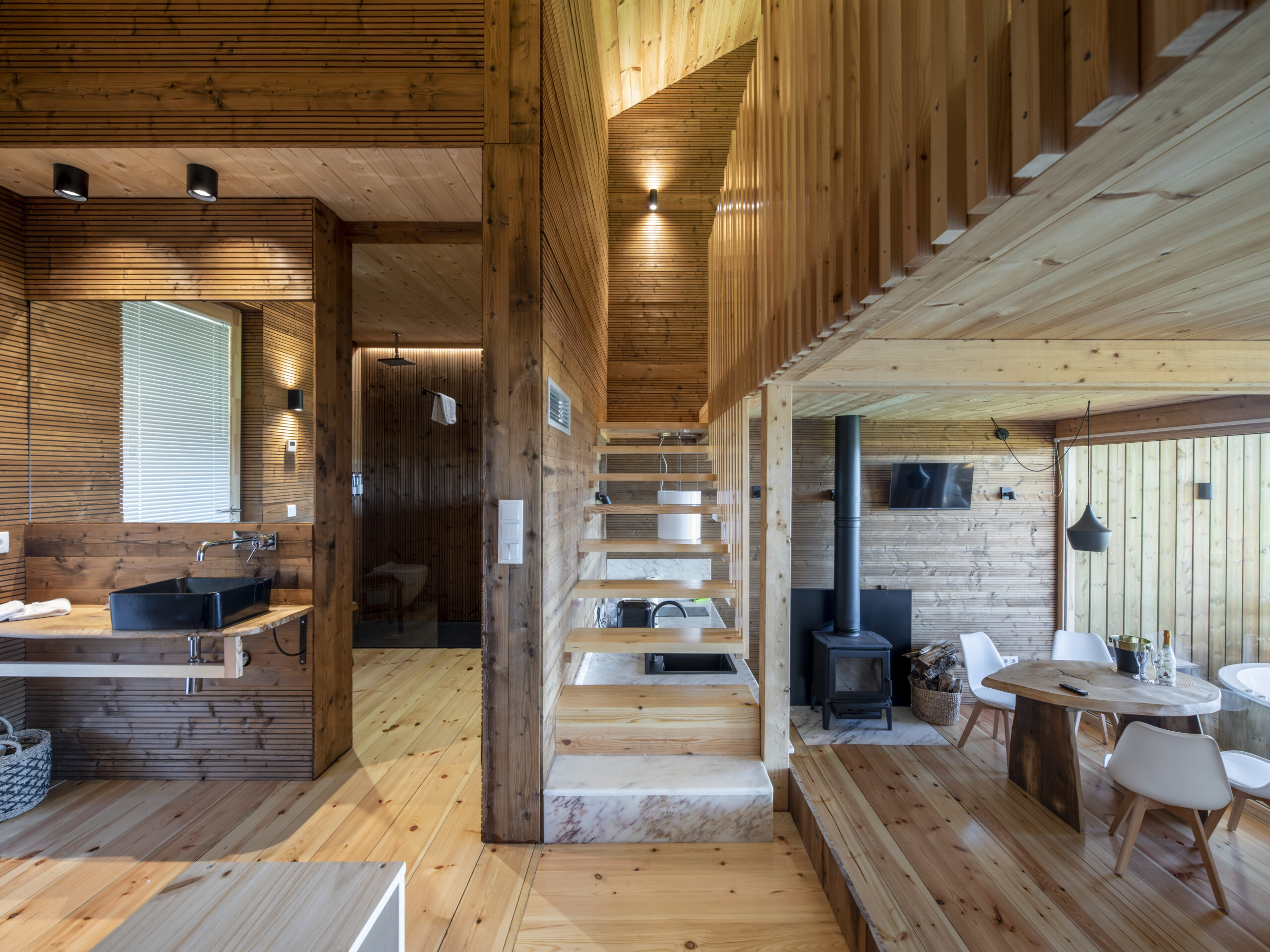 Nuestros apartamentos dúplex están pensados para quienes buscan amplitud, comodidad y unas vistas privilegiadas a la montaña. Con dos plantas bien distribuidas y espacios llenos de luz, ofrecen el equilibrio perfecto entre descanso y funcionalidad. Todos los apartamentos cuentan con una terraza privada con jacuzzi y una chimenea de leña para que tu estancia sea memorable.